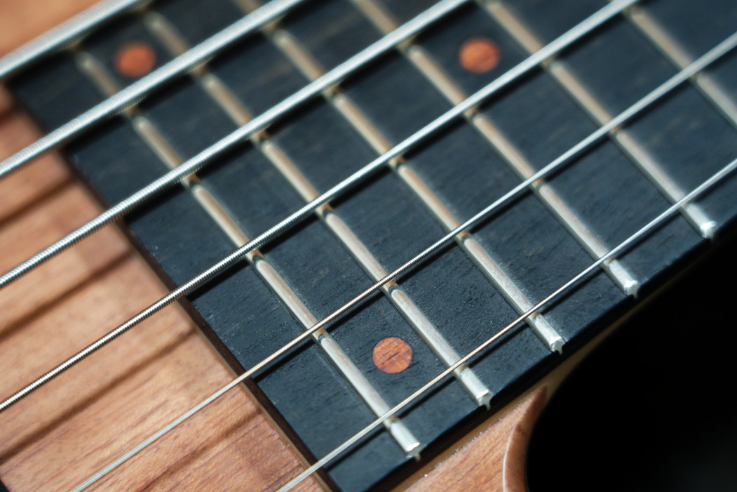 エボニー指板のポジションマークはしっかりブビンガ。