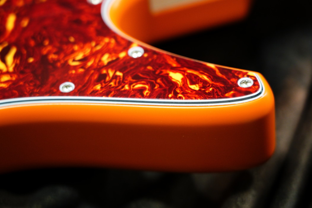 ピックアップはオリジナルのシングルコイルをボディカラーに合わせてくれような、クリームに。